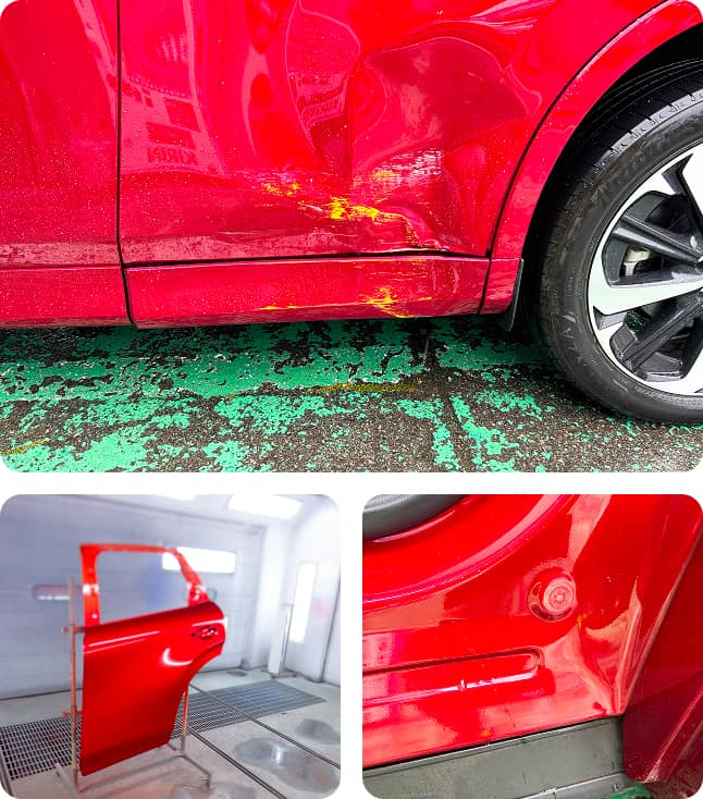 キズや凹凸修理はもちろんのこと、部品交換をともなう修理や対物・車両保険の手続きまで、常に安心をお届けします。